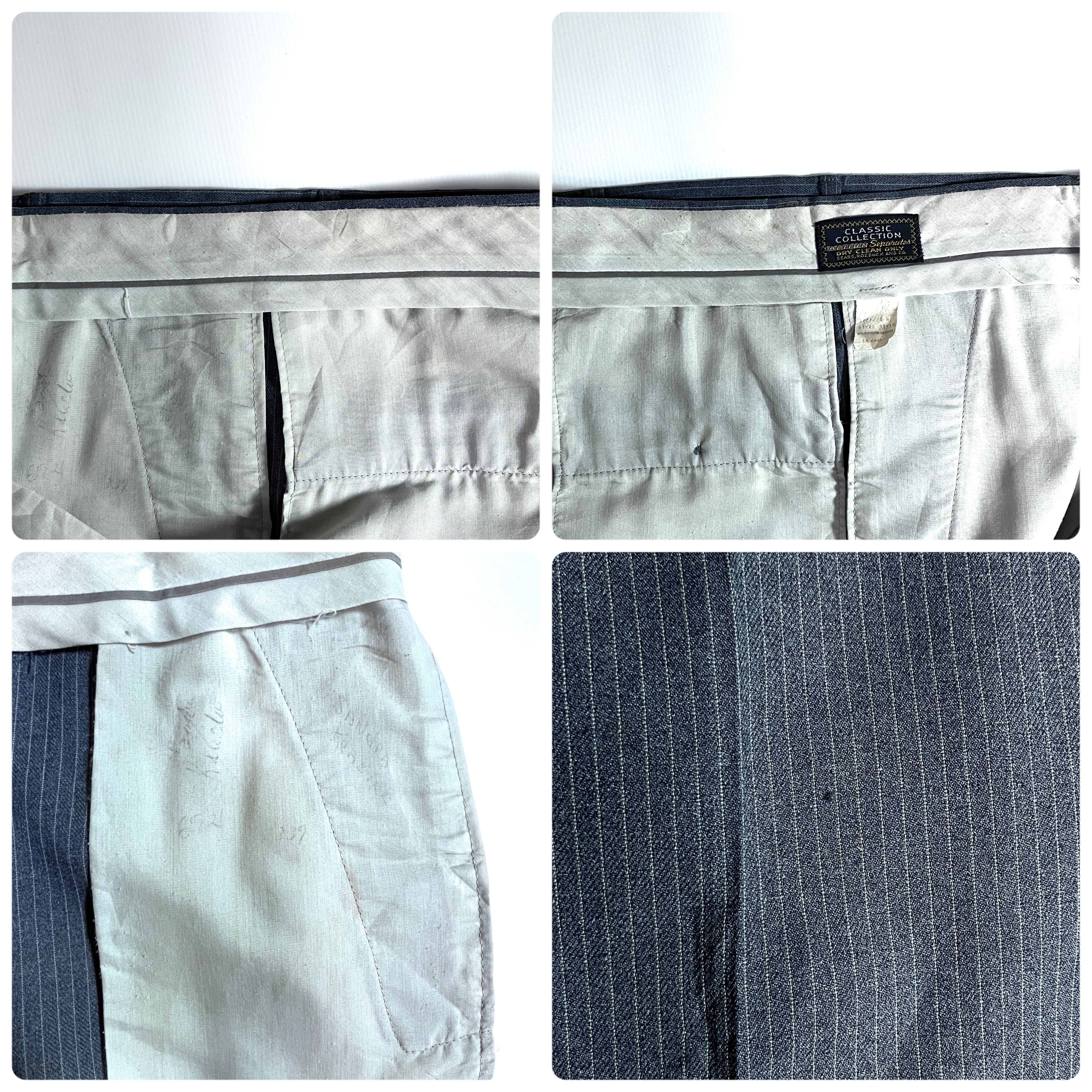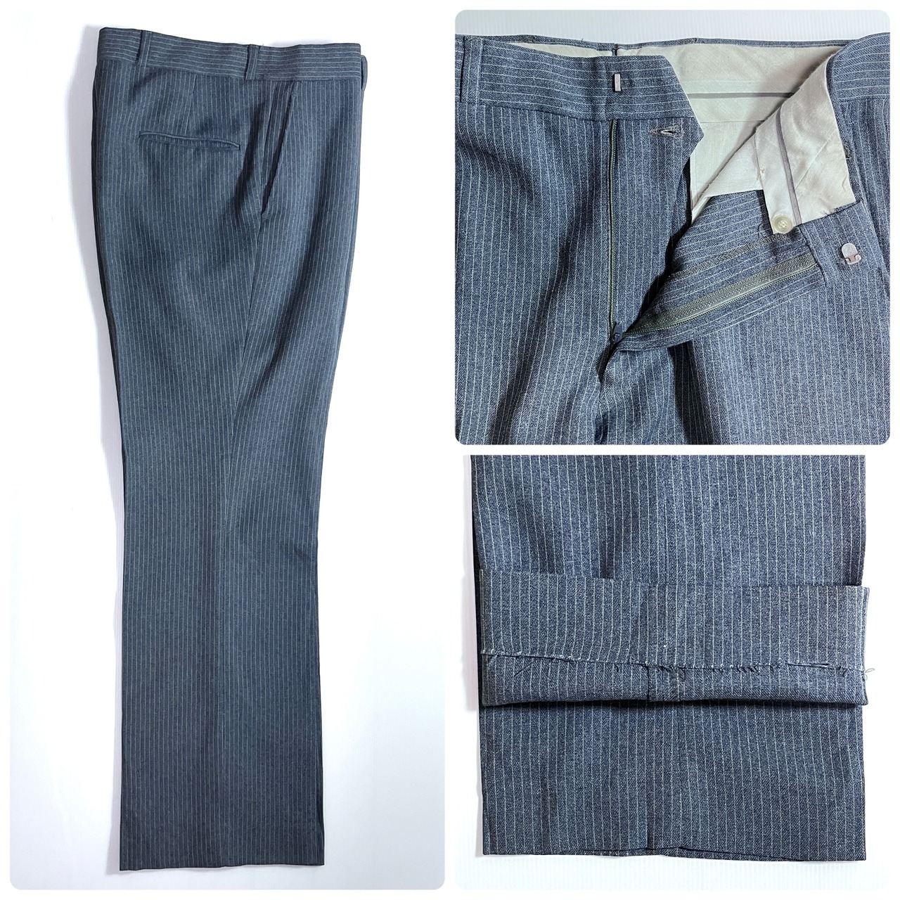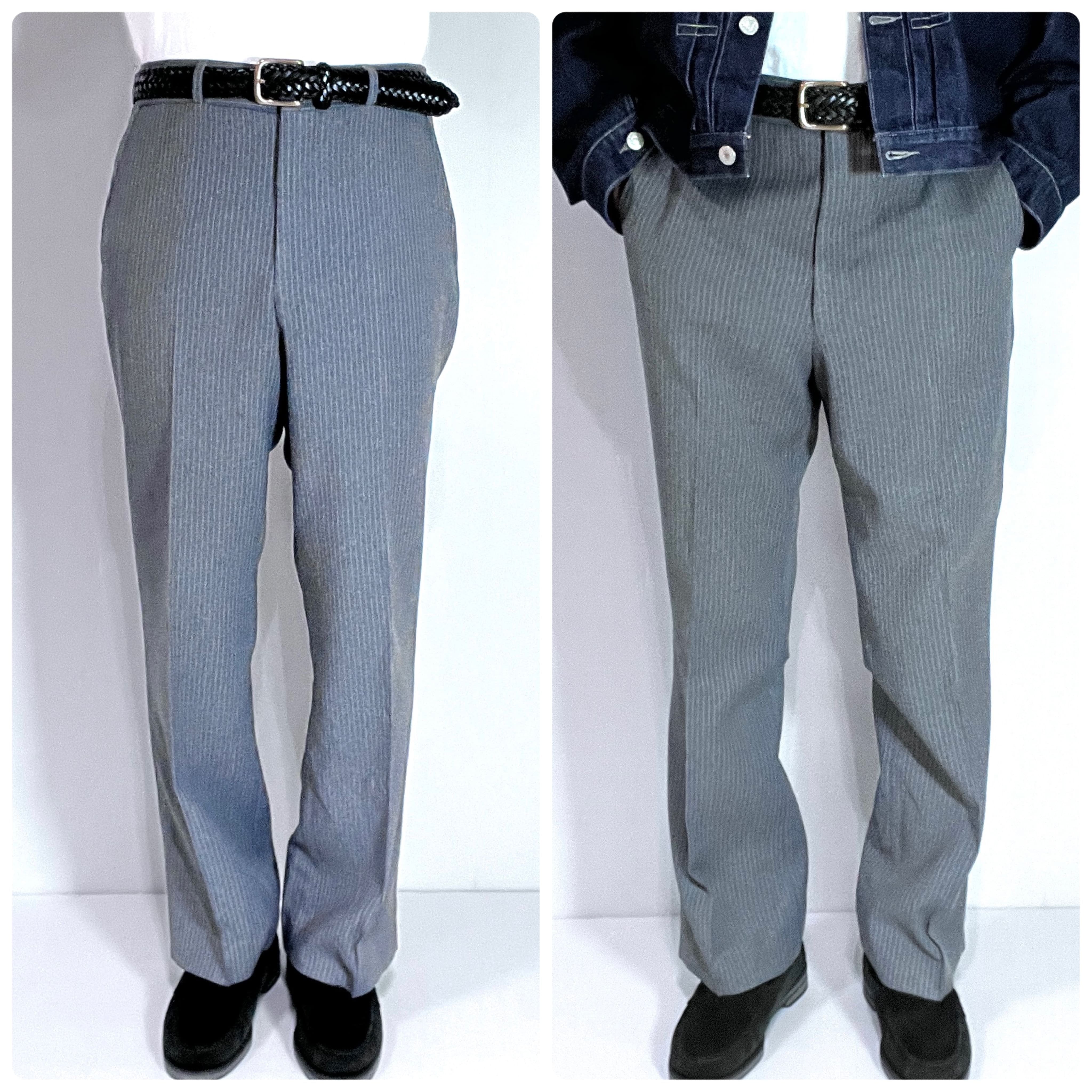 70s SEARS ROEBUCKS AND CO. シアーズ ローバックス CLASSIC COLLECTION ACTION Separates ヴィンテージ ストライプ アクション スラックス 34 R(実寸W34x L30) グレー ホワイト ストレッチ スーツパンツ チノパン ウールタッチ ポリパン ゴールデンサイズ v24123044 | June