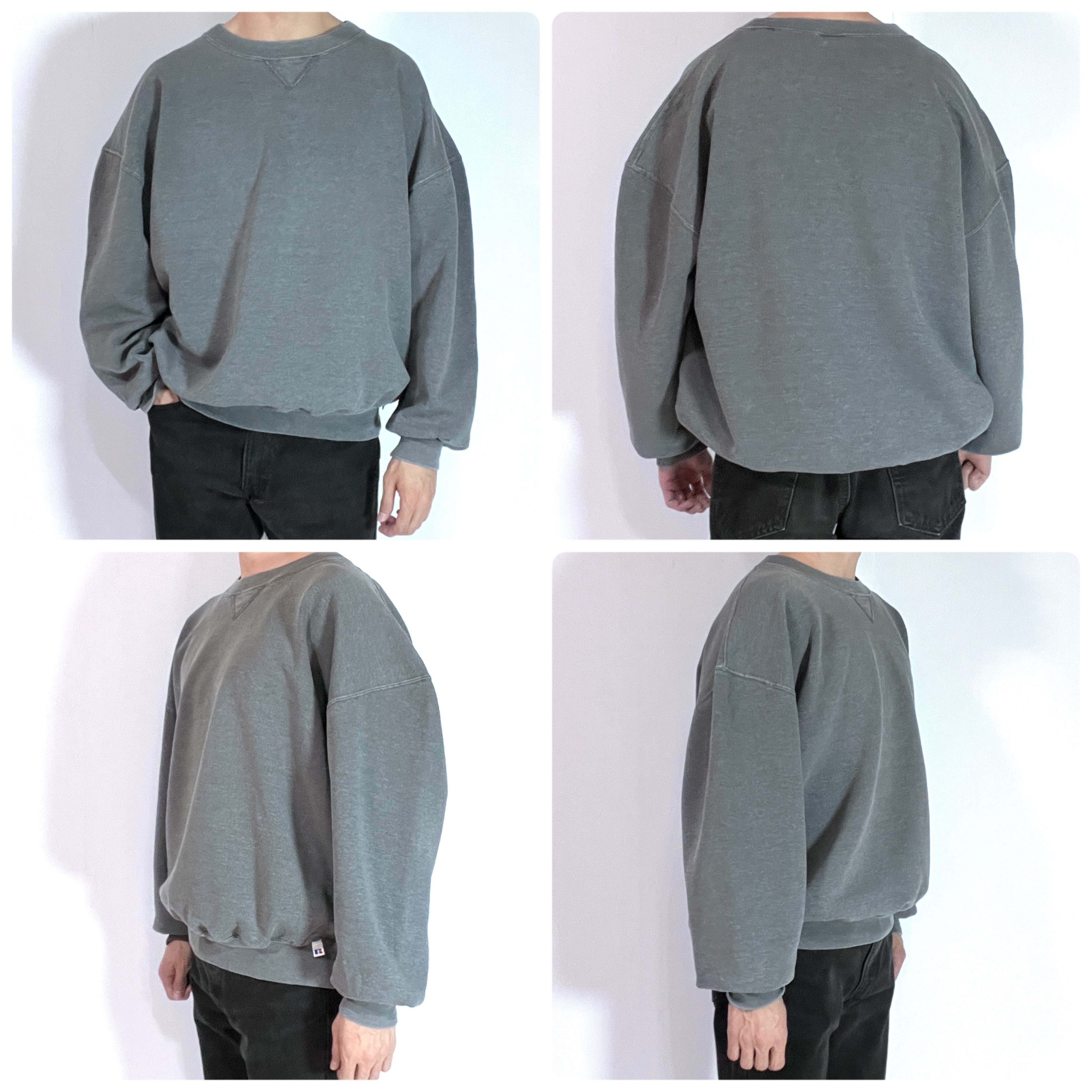 ・90s USA製 RUSSELL ATHLETIC ラッセル アスレチック 無地 前V 裏起毛 クルーネック スウェット