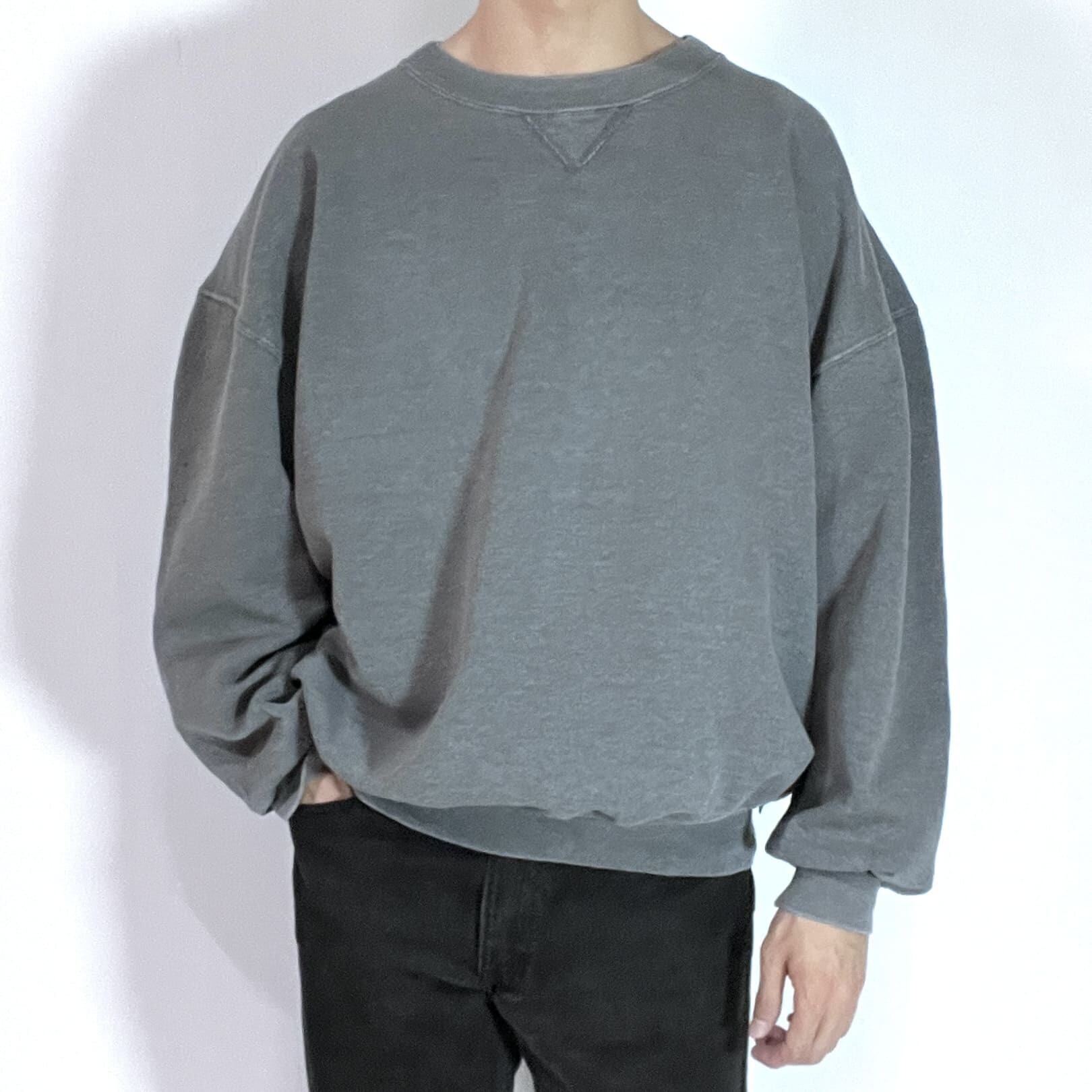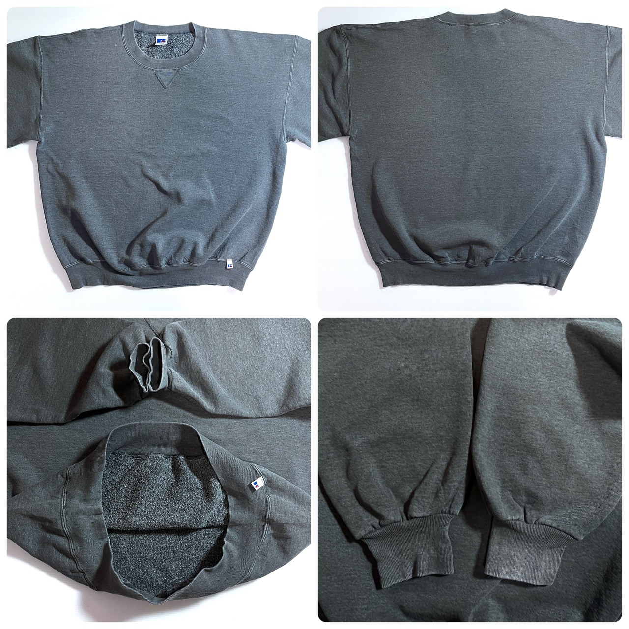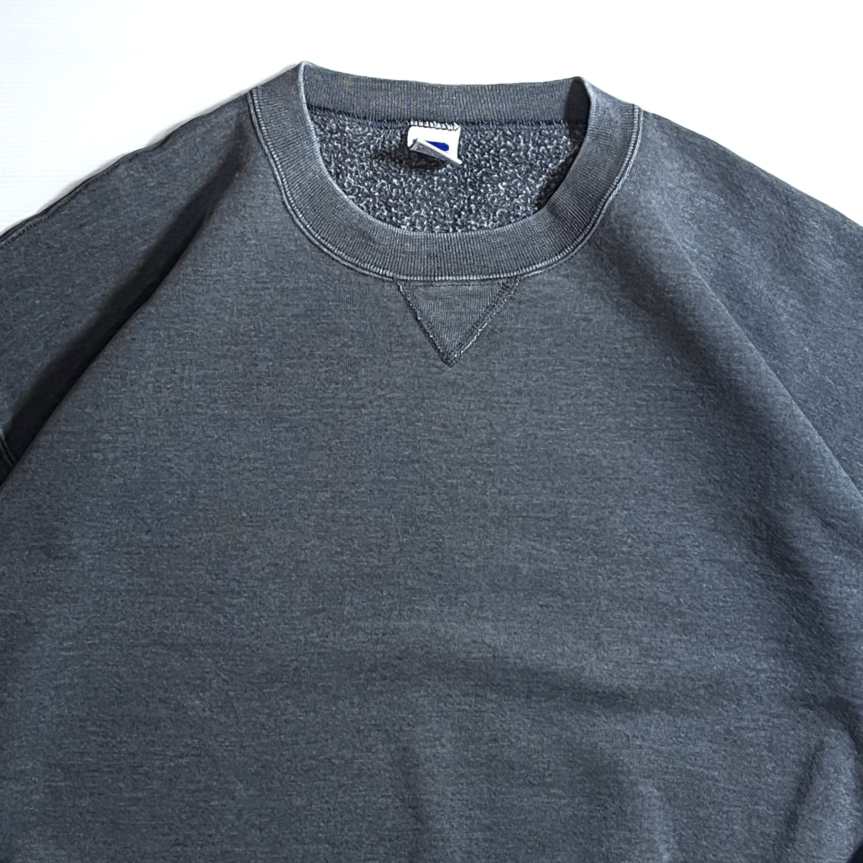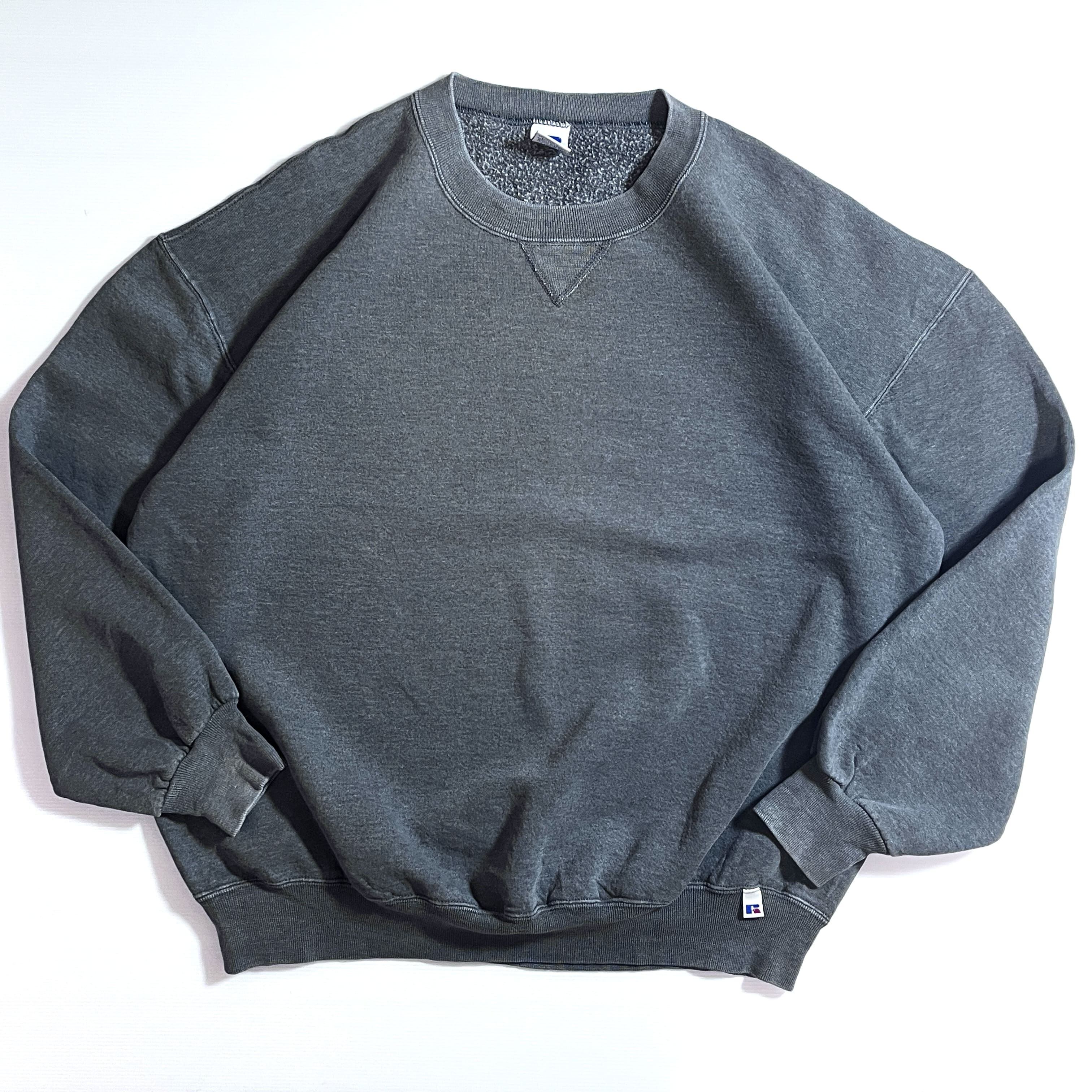 90s USA製 RUSSELL ATHLETIC ラッセル アスレチック XXL チャコールグレー 無地 前V 裏起毛 クルーネック スウェット トレーナー トップス ノームコア ソリッド 短丈 グッドフェード v24123059